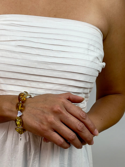 AgotadoPulsera 3 flores ambar borlas