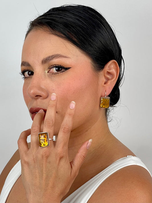 Anillo Rombo Ambar Ajustable