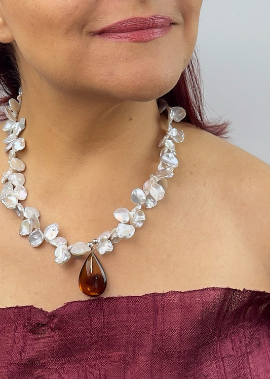 AgotadoCOLLAR ESFERAS 1 AMBAR 1 PERLA