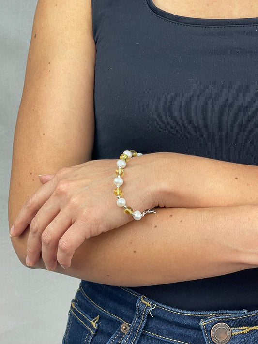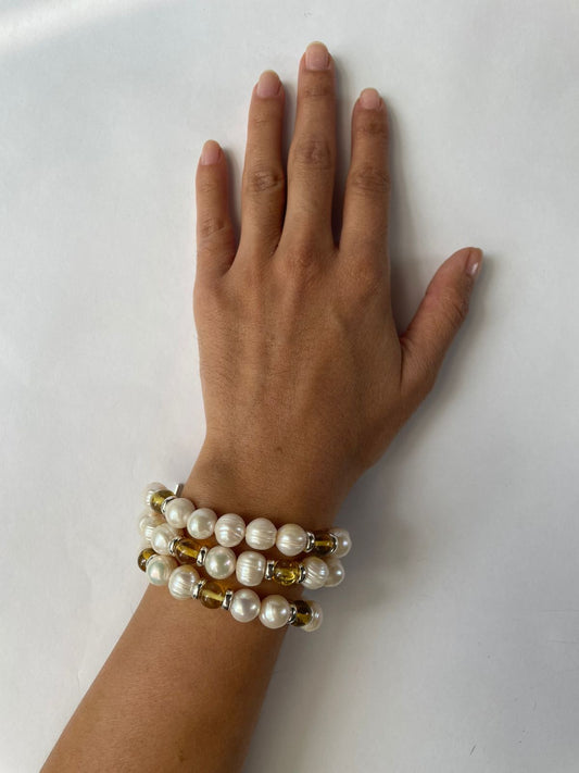 PULSERA ESFERAS 1 AMBAR 1 PERLA