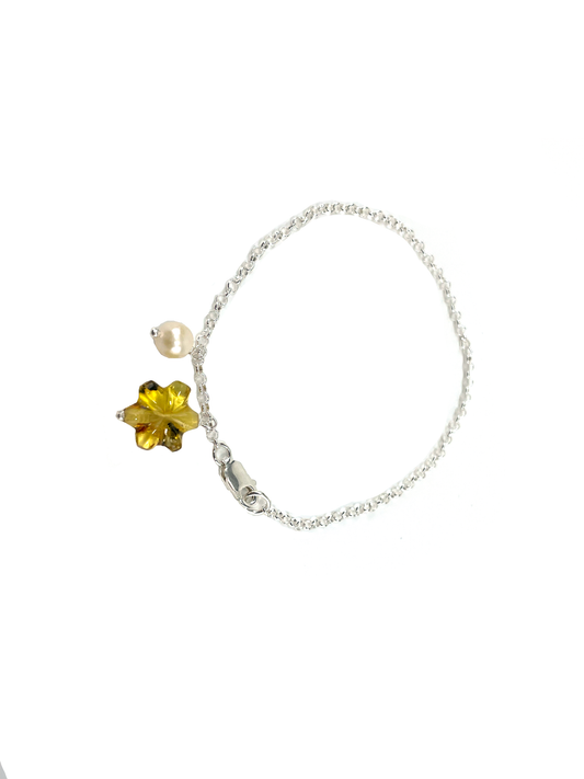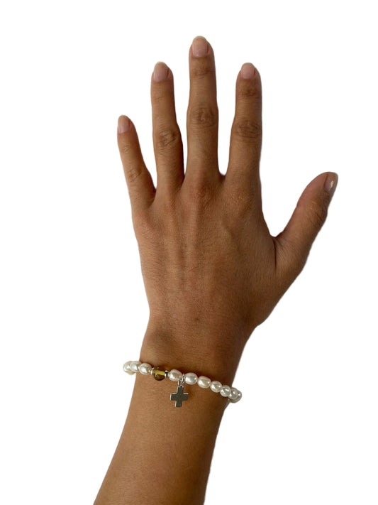 PULSERA PERLA CRUZ/FLOR AMBAR
