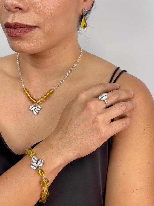 El envío súper rápido, el anillo con tejido y la pulsera con granos de café en plata sencillamente divinos!