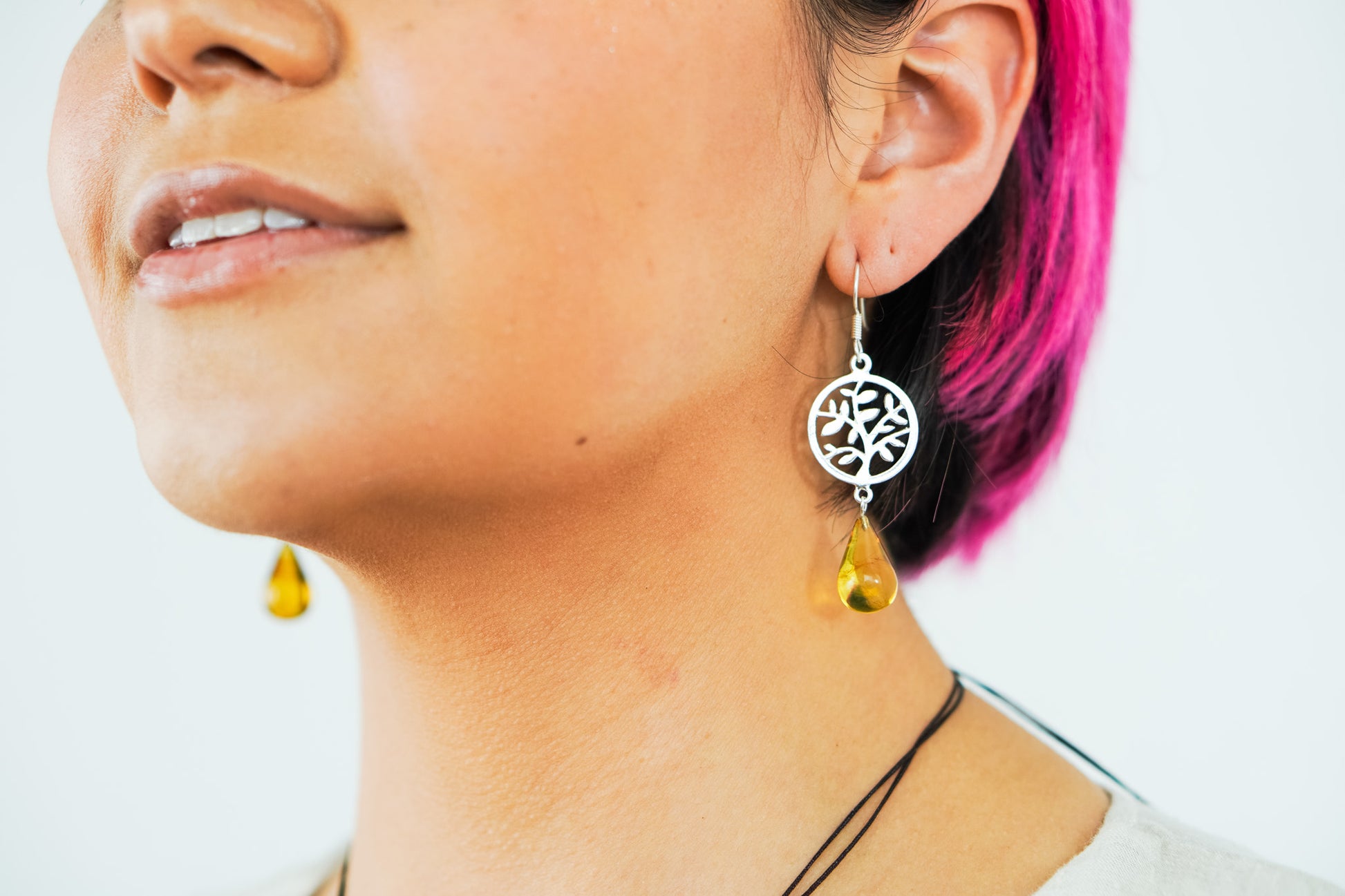 Están elaborados a mano con plata .925 y ámbar cuidadosamente seleccionado de Chiapas. Una resina fósil de 25 millones de años, extraída, cortada y pulida por manos chiapanecas.