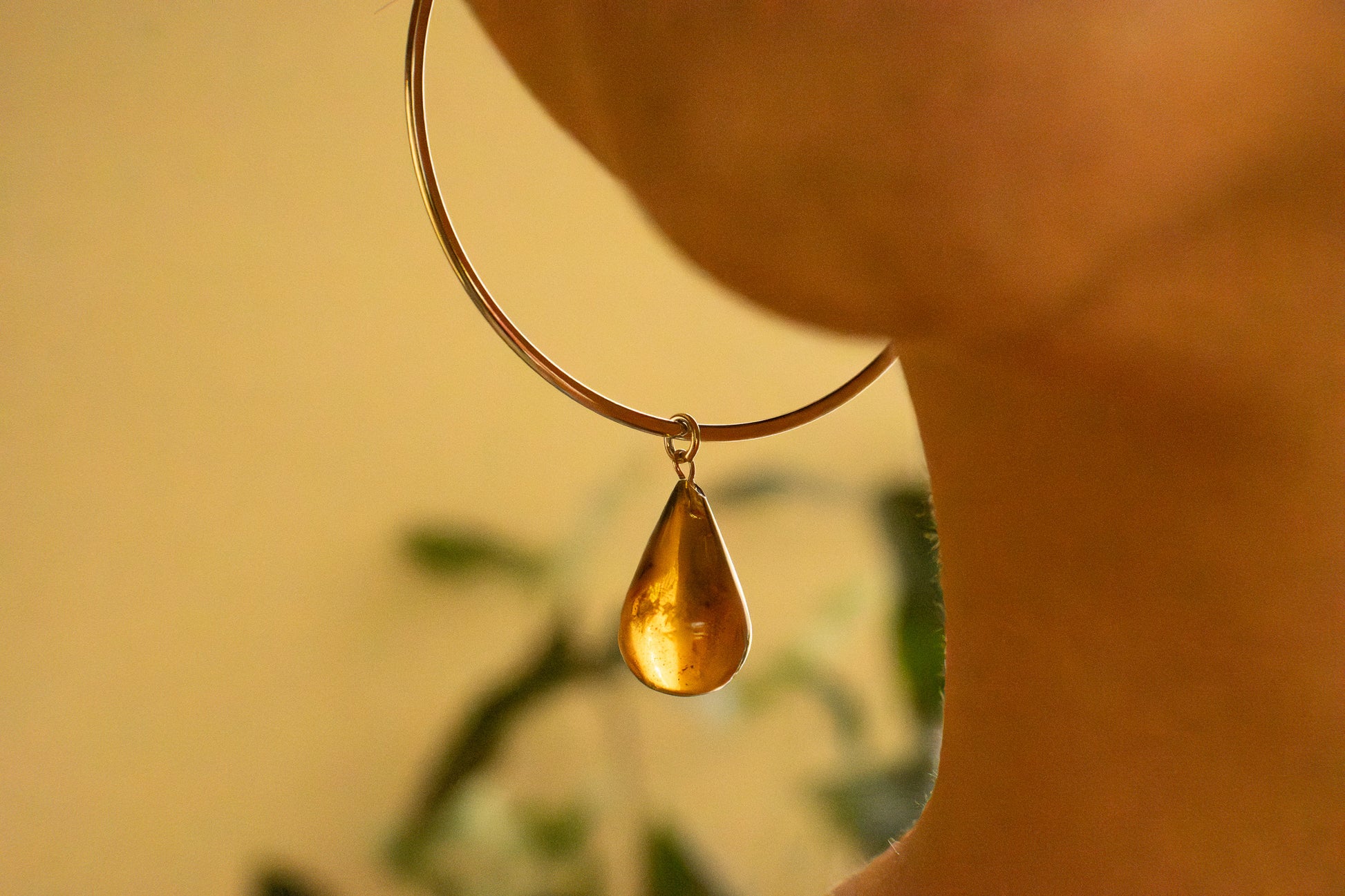 Arracada de 7 cm Largo y gota en ámbar de 2 cm