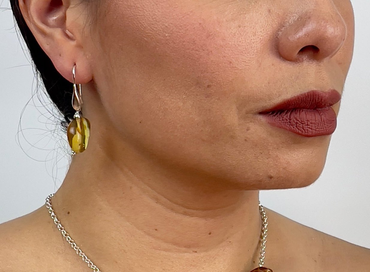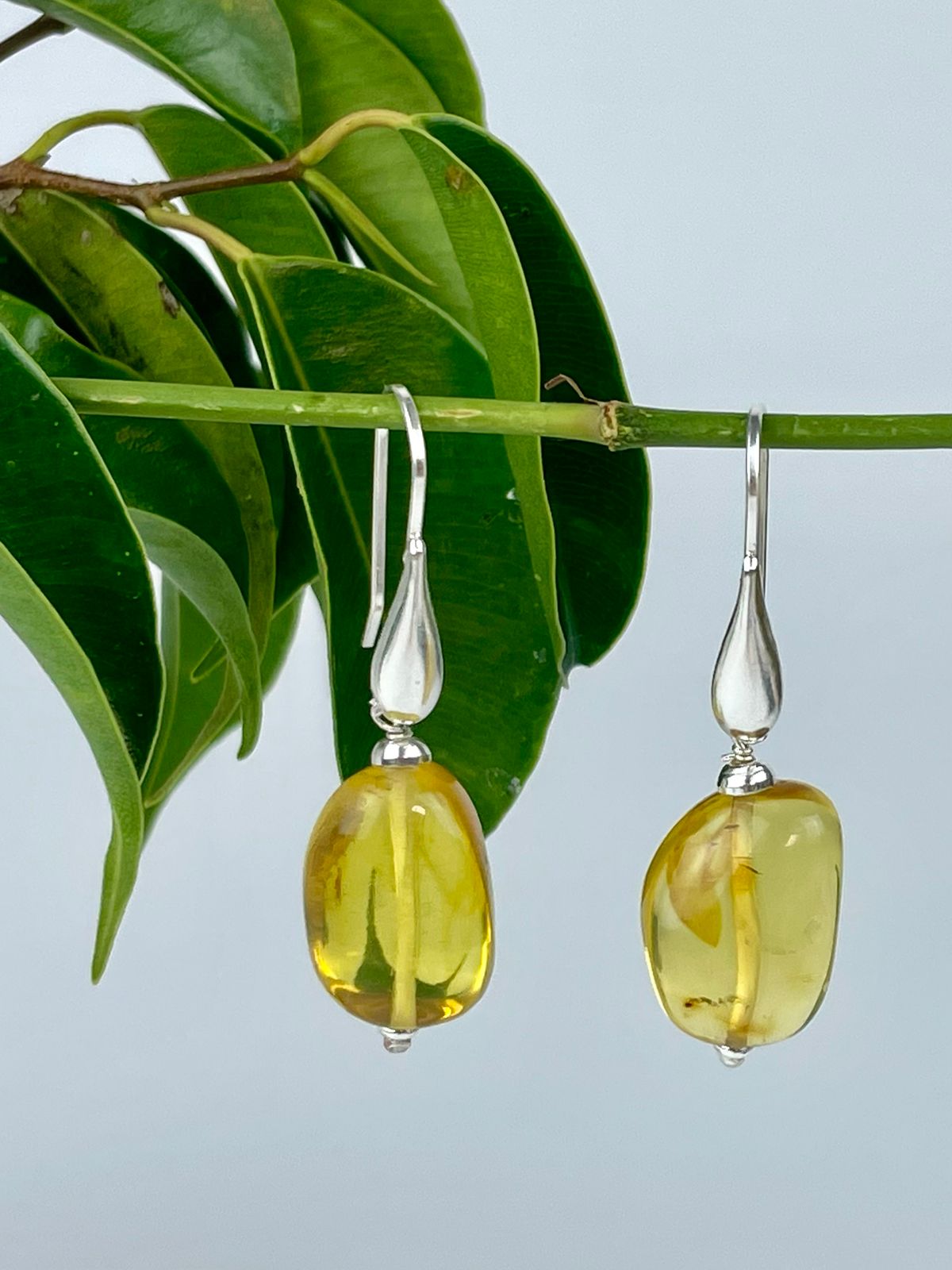 Arete Lágrima ámbar natural