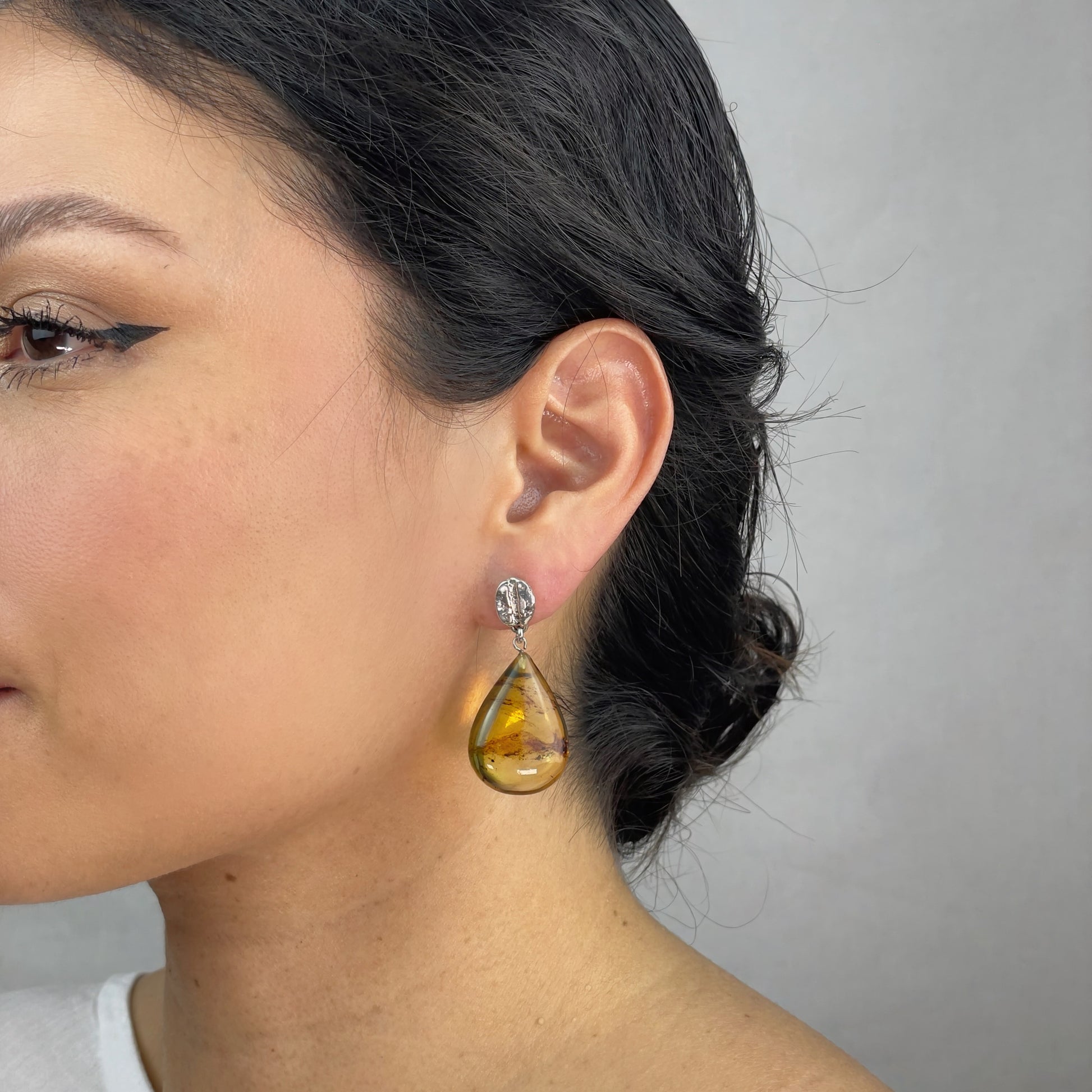 Están elaborados a mano con plata .925 y ámbar de Chiapas. Una resina fósil de 25 millones de años, extraída, cortada y pulida por manos chiapanecas.